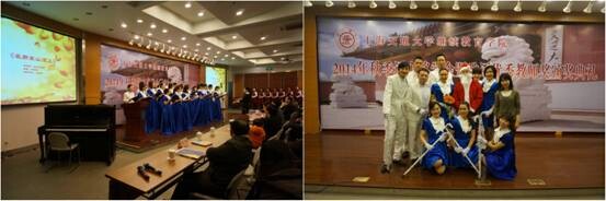 典礼中学院还邀请了“远方”合唱团为典礼助阵,热情的他们为大家带来了《在那东山顶上》以及具有圣诞气氛的《Jingo Bells》,典礼在浓浓的圣诞氛围中划上了圆满的句号。